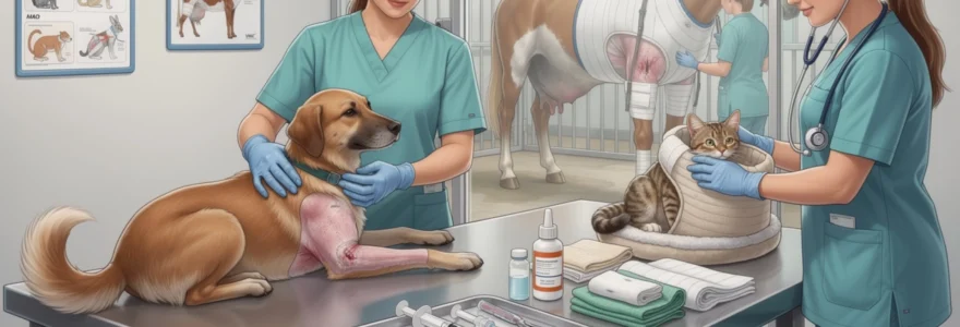 Les traumatismes constituent une cause majeure de consultation vétérinaire d’urgence, représentant environ 25% des cas reçus dans les cliniques spécialisées. Face à une blessure animale, la qualité des premiers soins détermine largement le pronostic de guérison et peut prévenir des complications graves comme l’infection ou la cicatrisation défectueuse. Chaque espèce domestique présente des spécificités anatomiques et physiologiques qui influencent directement l’approche thérapeutique. La maîtrise des techniques de pansement adaptées devient donc indispensable pour tout propriétaire d’animal ou professionnel de santé vétérinaire souhaitant optimiser la prise en charge des lésions cutanées et sous-cutanées.